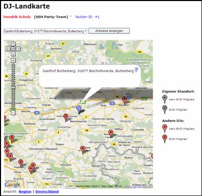zu haben - Anzeige einer DJ-Landkarte mit einer geografischen Übersicht alle registrieren DJs