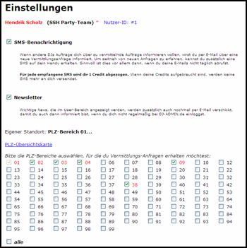 Unter der formulierten E-Mail bzw. SMS sind alle DJs aufgelistet, die potentiell für eine Anfrage in dieser Region in Frage kommen. Die Übersicht ist unterteilt in die DJs, die ihren Wohnort in der PLZ-Region des Veranstaltungsortes haben und die DJs, die zwar in einer anderen Region zuhause, in der angefragten Region aber dennoch tätig sind.