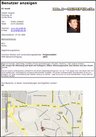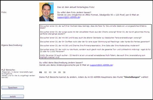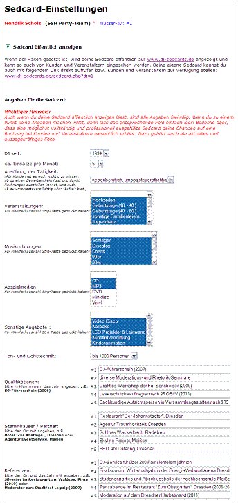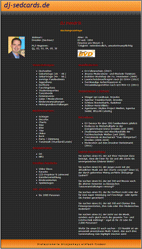 - öffentliche Sedcard unter www.dj-sedcards.de, um sich selbst seinen Kunden mit einem Kurzprofil vorzustellen