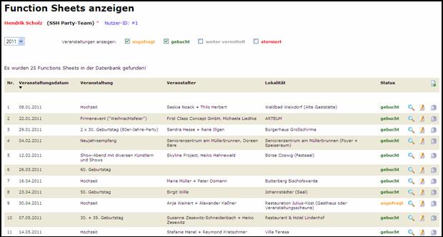 - Kopier-Möglichkeit für ein Function Sheet, um ähnliche Veranstaltungen oder wiederkehrende Veranstaltungsreihen in den Kalender einzutragen