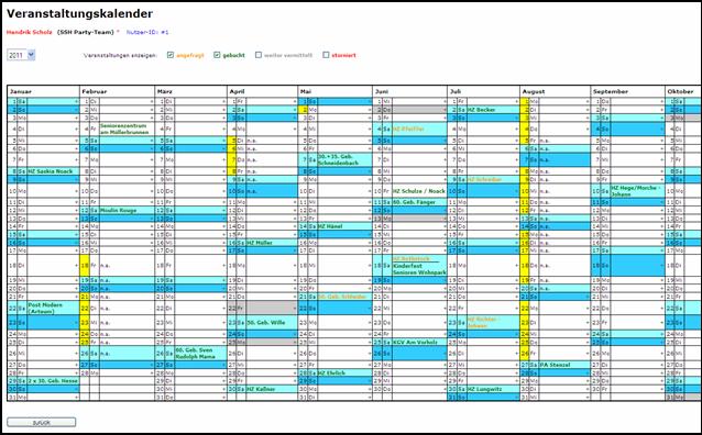- persönlicher Veranstaltungskalender für jeden Nutzer mit farblicher Darstellung des Buchungsstatus jeder eingetragenen Veranstaltung