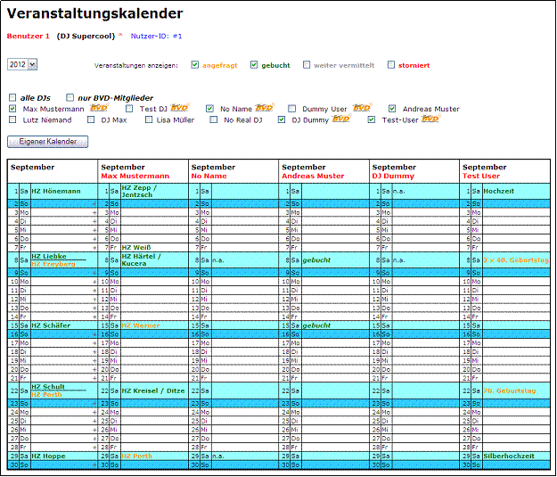 - grün - ein DJ, der dir seinen Kalender freigegeben hat und an diesem Tag noch zur Verfügung steht