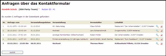 Alle angefragten DJs sehen diese Vermittlungsanfrage in ihrem Account unter dem Menüpunkt Anfragen von anderen DJs. (siehe Punkt 6.2). Allerdings sieht dort nur der DJ die Kundendaten und weitere relevante Daten zur Veranstaltung, dem diese Veranstaltung zugewiesen wurde.