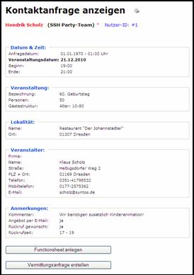 - Übernahme der Daten aus einer eingehenden Veranstaltungsanfrage in ein