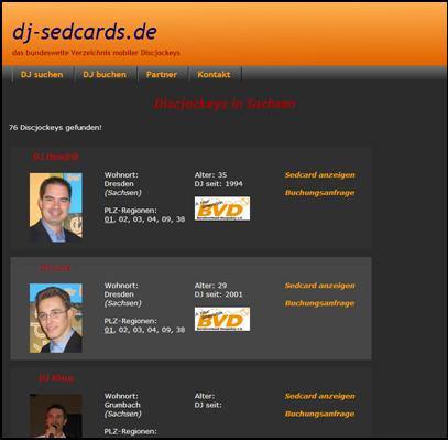 Unter der URL www.dj-sedcards.de wurde ein Portal entwickelt, welches Sedcards zu allen bei DJ-ADMIN registrierten Nutzern enthält.